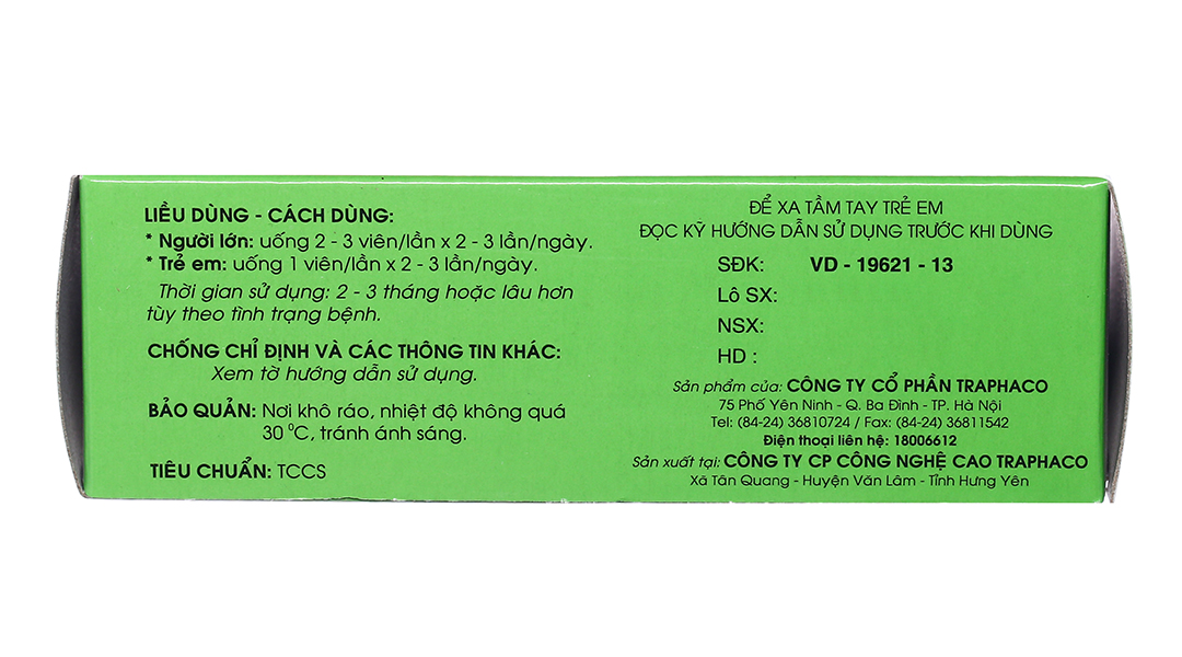 - Trẻ em: uống 1 viên/lần x 2 – 3 lần/ngày.