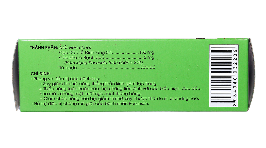- Cao khô lá Bạch quả (Extractum Folii Ginkgo siccus) 5 mg (Hàm lượng Flavonoid toàn phần ≥ 24%)