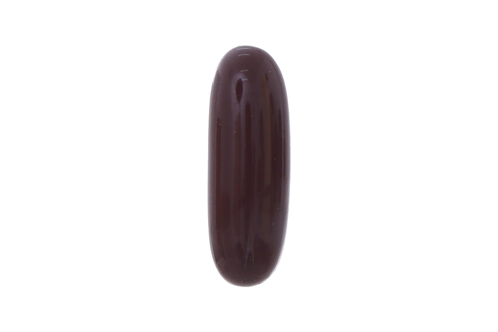Viên nang mềm hình thuôn dài, màu socola, bên trong chứa dịch thuốc màu nâu.