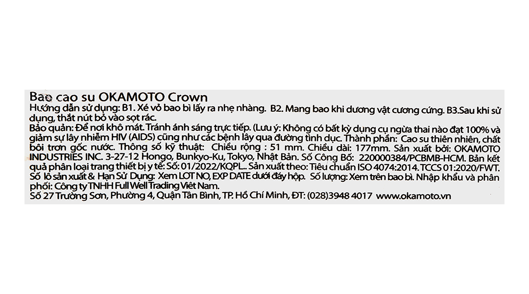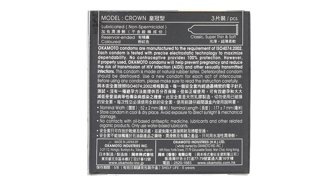 Bao cao su Okamoto Crown siêu mỏng 52mm hộp 3 cái