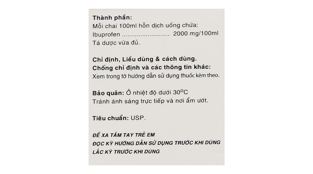 Hỗn dịch uống IbuAPC 2000mg/100ml giảm đau, hạ sốt, kháng viêm chai 100ml
