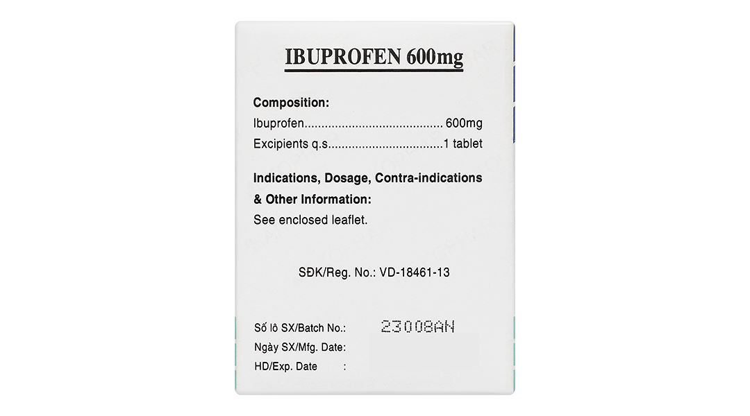 - Ibuprofen 600mg.