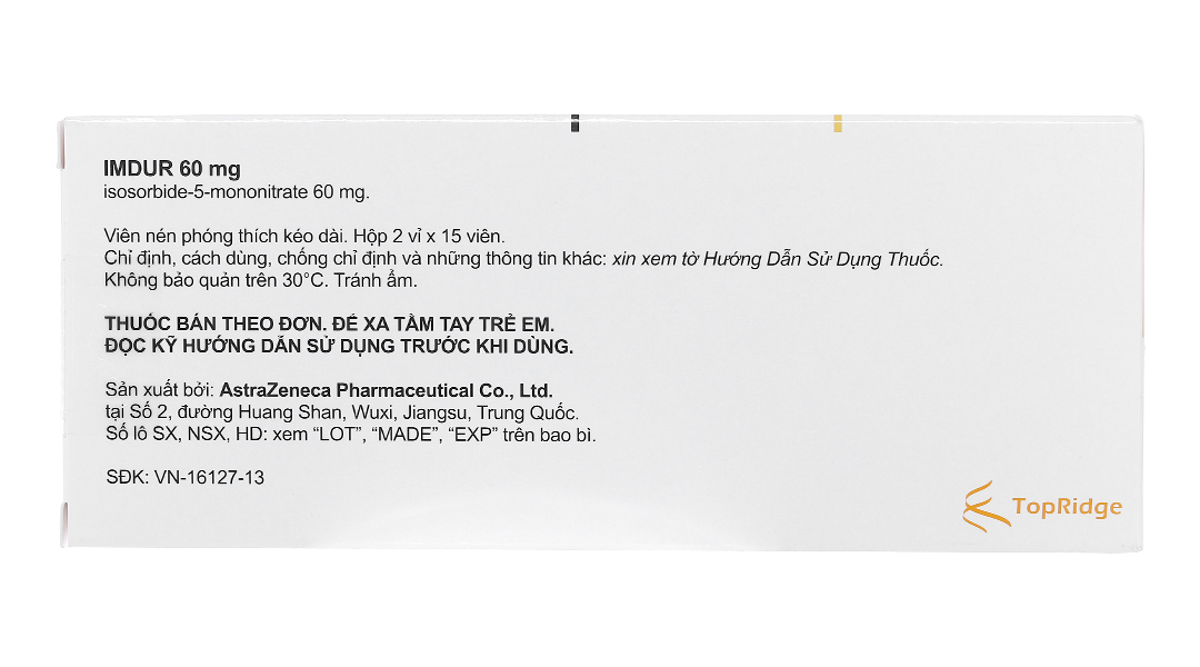 Imdur 60mg dự phòng trị đau thắt ngực (2 vỉ x 15 viên)