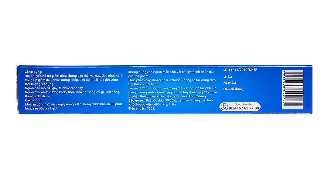 Công dụngHỗ trợ giảm đau mỏi vai gáy, cánh tay, đau nhức xương khớp, đau do thoái hóa đốt sống