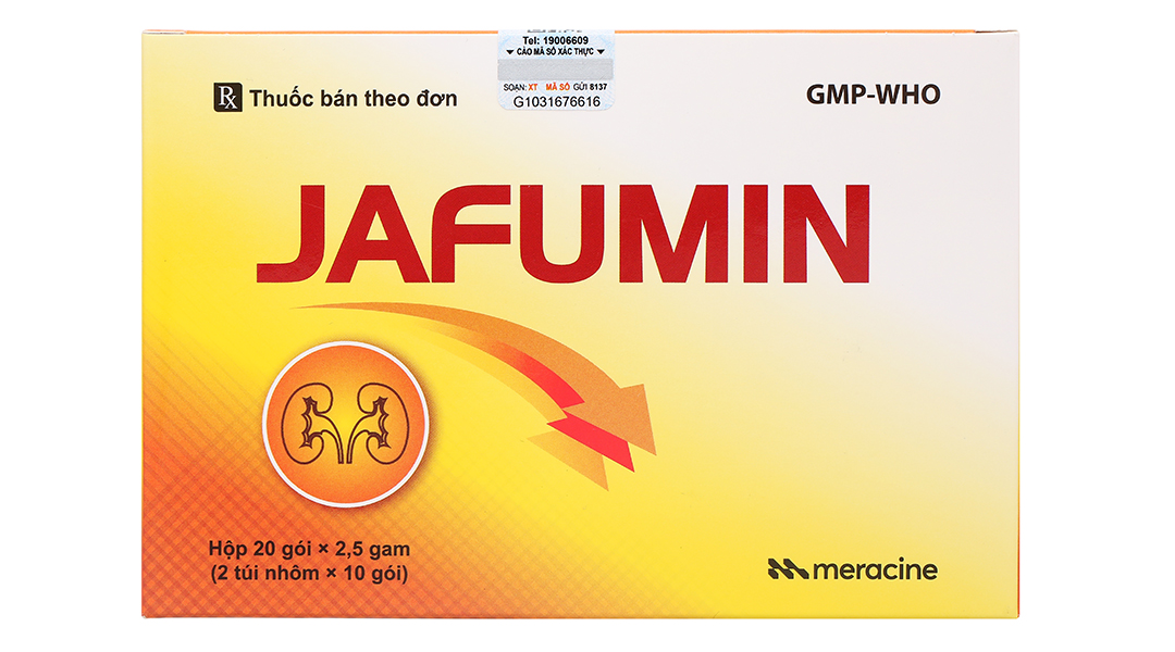 – Thận trọng khi sử dụngVào thời điểm sử dụng, phải cung cấp cho bệnh nhân chế độ ăn ít protein theo chức năng thận của họ và lượng calo hấp thụ nên là 1800 Kcal hoặc cao hơn. Sử dụng thuốc cho trẻ em: Độ an toàn của Jafumin đối với trẻ em chưa được xác định. Sử dụng ở người cao tuổi: Nói chung vì chức năng sinh lý bị giảm ở người cao tuổi nên cẩn thận khi dùng Jafumin như giảm liều dùng. – Thai kỳ và cho con búThuốc chỉ nên sử dụng ở phụ nữ có thai nếu lợi ích dự tính của việc điều trị lớn hơn nguy cơ có thể xảy ra liên quan với điều trị. Độ an toàn của thuốc cho phụ nữ có thai chưa được xác định. Không khuyên dùng thuốc ở phụ nữ cho con bú. Nếu việc sử dụng thuốc được đánh giá là cần thiết, phải ngừng cho con bú trong thời gian điều trị. Độ an toàn của thuốc cho phụ nữ cho con bú chưa được xác định. – Khả năng lái xe và vận hành máy mócKhông có trường hợp nào đã được báo cáo về khả năng lái xe hoặc vận hành máy móc có thể bị ảnh hưởng. – Tương tác thuốcKhông có báo cáo cho thấy tương tác với các thuốc khác. |