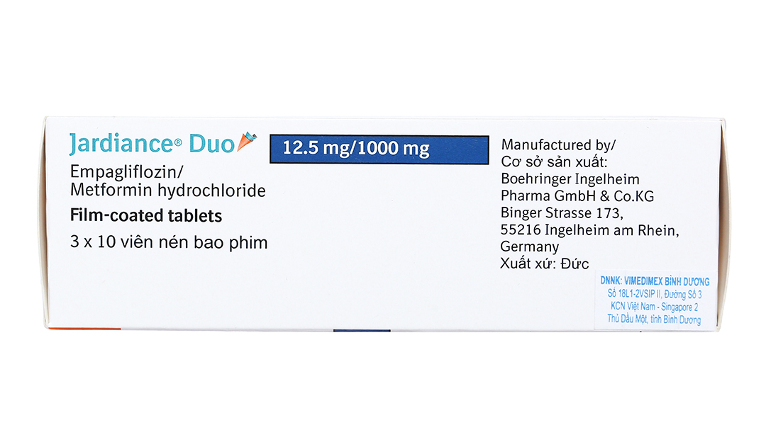 Jardiance Duo 12.5mg/1000mg trị đái tháo đường (3 vỉ x 10 viên)
