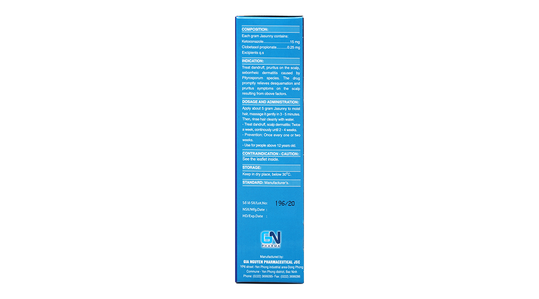 - Ketoconazol: Sự hấp thu qua da của Ketoconazole trong Jasunny không đáng kể, do đó không tạo ra được một nồng độ có thể phát hiện ở máu.