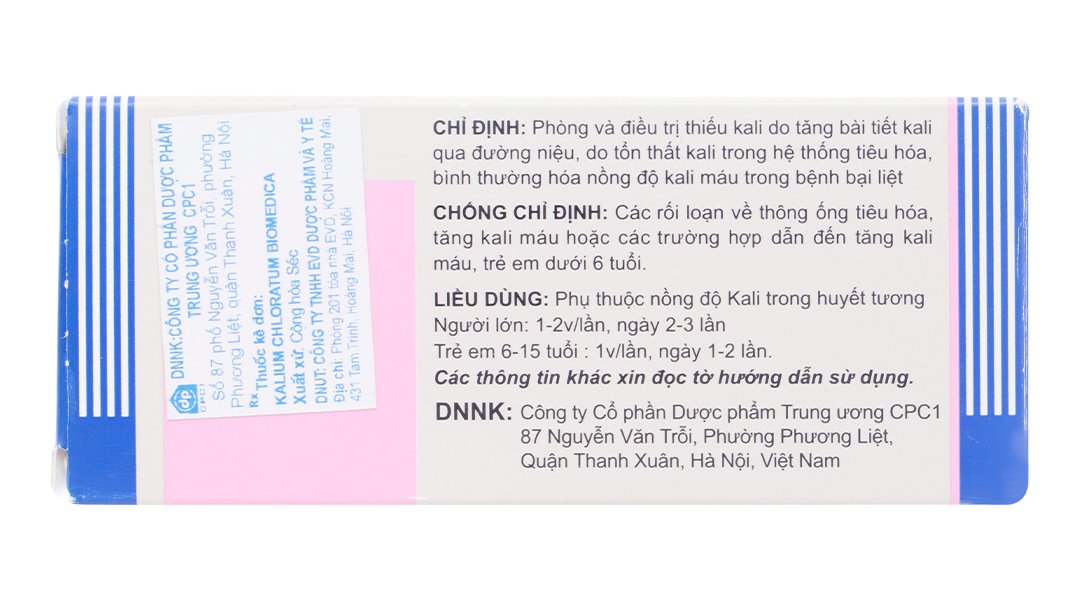 Kalium Chloratum 500mg phòng và trị thiếu kali (10 vỉ x 10 viên)