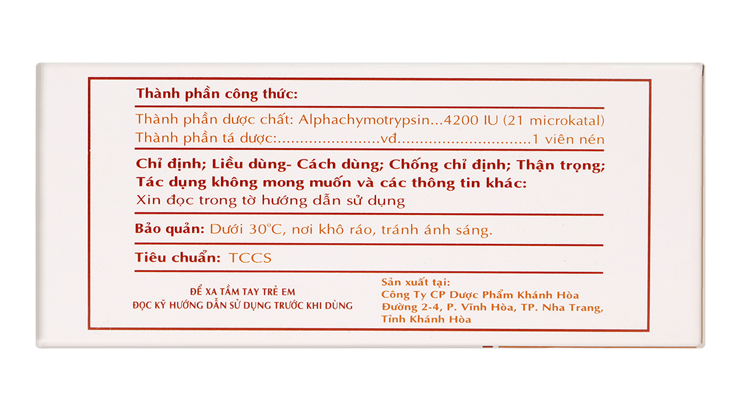 Thành phần dược chất: Alphachymotrypsin 4200 IU (21 microkatals).
