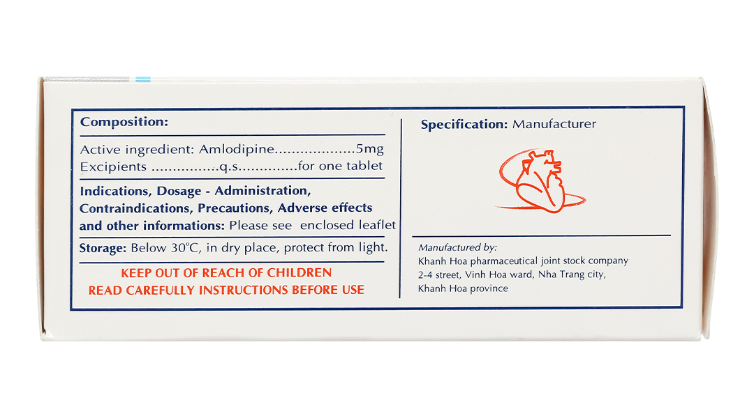 Thành phần dược chất: Amlodipin 5mg (dưới dạng amlodipin besilat 6,935mg).