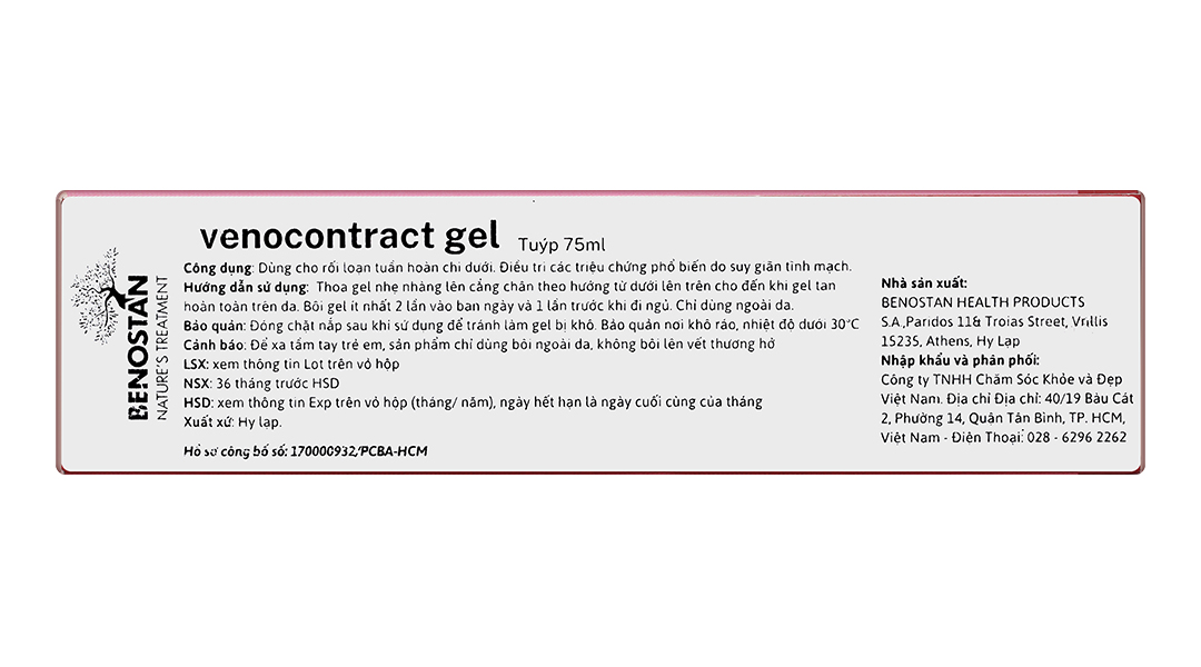 Venocontract Gel có tính êm dịu từ dịch chiết lá Olea Europaea chứa polyphenols, vitamin A, E & K có hoạt tính chống oxy hóa, giữ ẩm, làm mềm da.