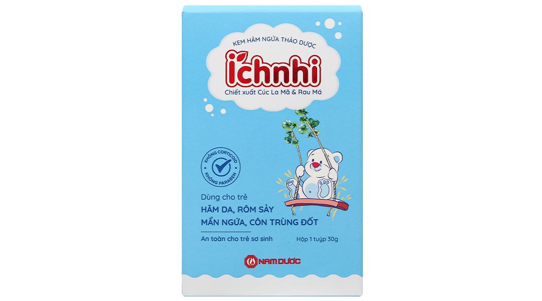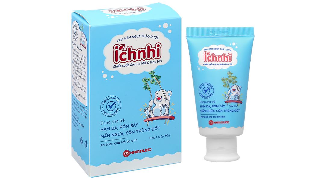Kem hăm ngứa thảo dược Ích Nhi được sản xuất bởi hãng Nam Dược, được thiết kế đặc biệt cho da trẻ em nhạy cảm. Sản phẩm chứa các thành phần tự nhiên với chiết xuất từ cây hoa cúc la mã, rau má giúp bảo vệ và dưỡng ẩm cho da của bé.