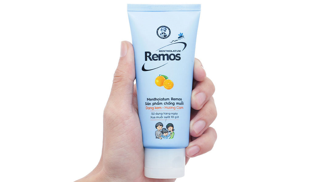 Kem xịt côn trùng, đuổi côn trùng Remos là sản phẩm kem xịt côn trùng được sử dụng phổ biến cho cả trẻ em và người lớn. Kem chống muỗi Remos hương cam 70g duy trì hiệu quả chống muỗi đến 10 giờ. Ngoài ra còn giúp giữ ẩm, dưỡng da, cho làn da mềm mại, mịn màng hơn.