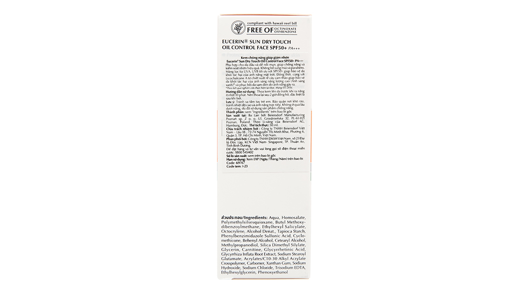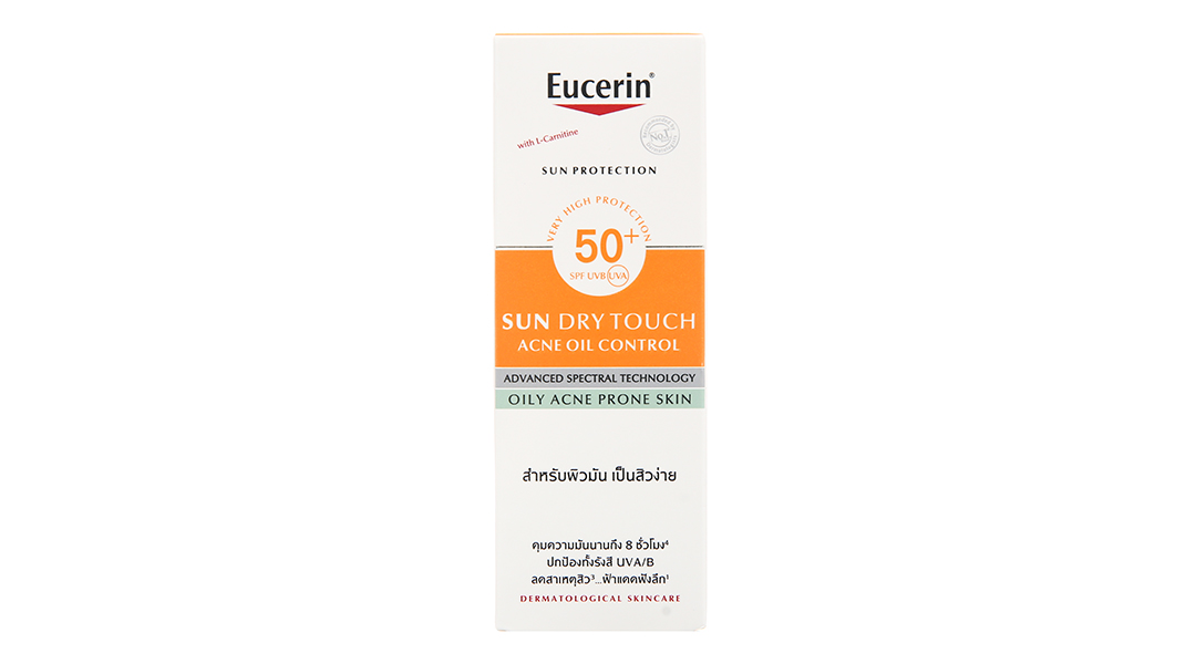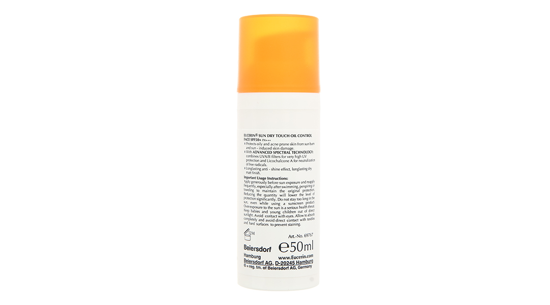 Kem chống nắng eucerin sun dry touch spf50+ pa+++ giúp giảm nhờn, phù hợp cho da dầu và dễ nổi mụn, giúp chống nắng và kiểm soát nhờn hiệu quả. Không bổ sung mùi và parabens. Màng lọc tia UVA, UVB tối ưu với SPF 50+, kem chống nắng Eucerin giúp bảo vệ da khỏi tác hại của ánh nắng mặt trời. Đồng thời, cùng với Licochalcone A từ chiết xuất rễ cây Cam Thảo giúp bảo vệ da khỏi tác hại của ánh sáng năng lượng cao và phục hồi da sạm đen do ánh nắng gây ra.