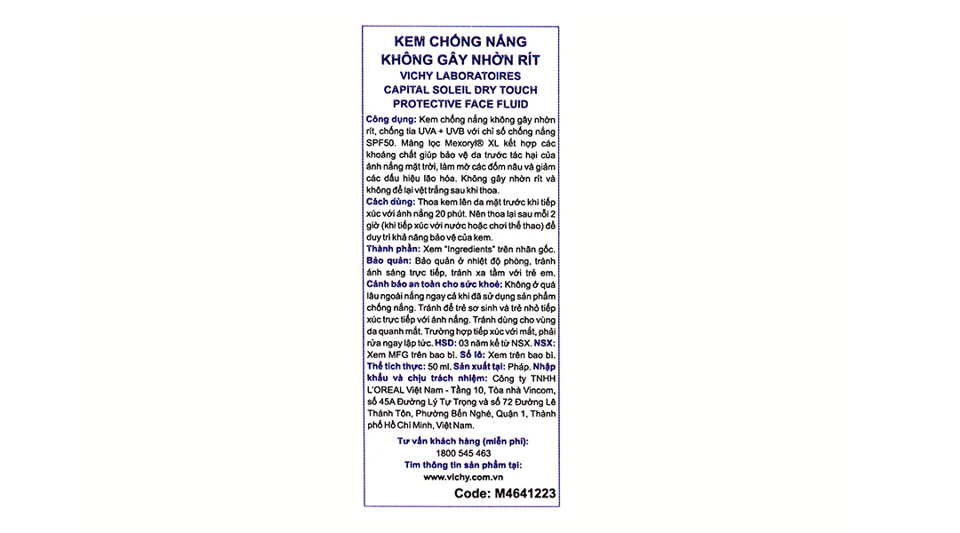 Kem chống nắng Vichy Capital Soleil Dry Touch Protective Face Fluid SPF 50 tuýp 50ml