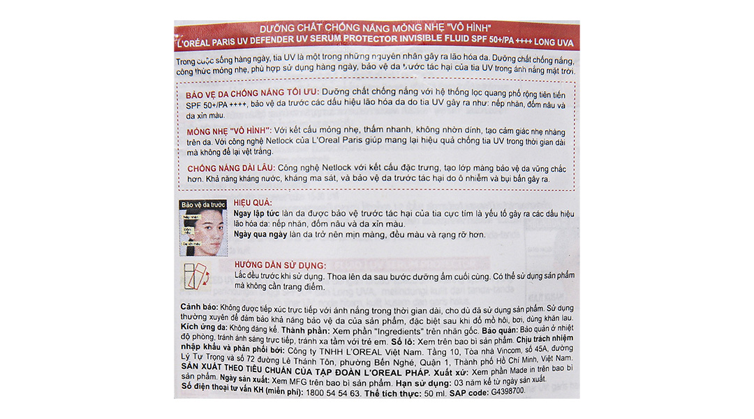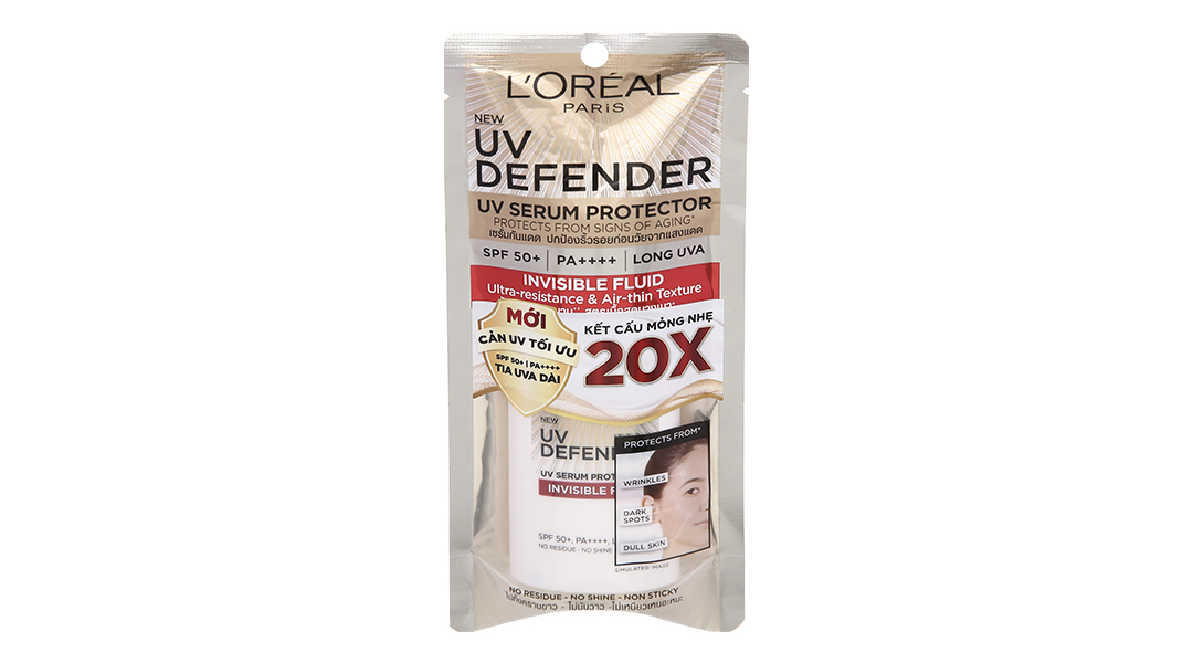 Mỏng nhẹ “vô hình”: với kết cấu mỏng nhẹ, thấm nhanh, không nhờn dính, tạo cảm giác nhẹ nhàng trên da. Với công nghệ Netlock của L’Oreal Paris giúp mang lại hiệu quả chống tia UV trong thời gian dài mà không để lại vệt trắng.