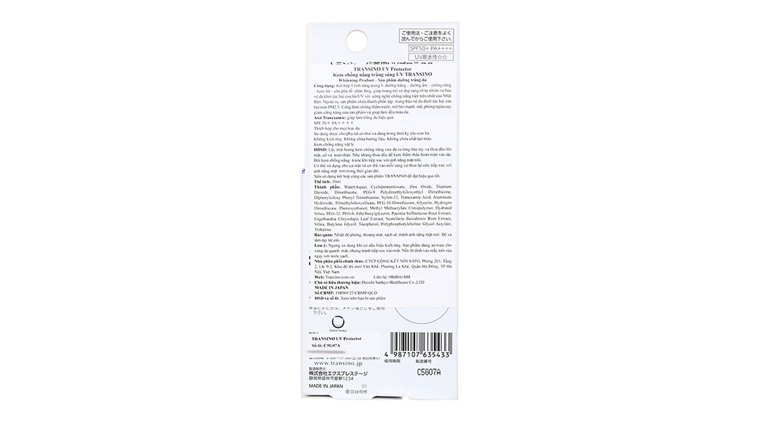 Kem chống nắng Transino UV Protector SPF 50+/PA++++ thích hợp cho mọi loại da. Dạng sữa mịn, không gây cảm giác bết dính, đem lại cảm giác nhẹ nhàng, thoải mái.