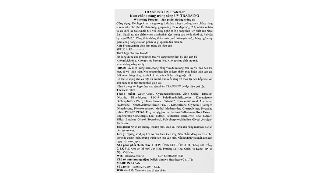 Nên sử dụng kết hợp cùng các sản phẩm TRANSINO để đạt hiệu quả tốt.