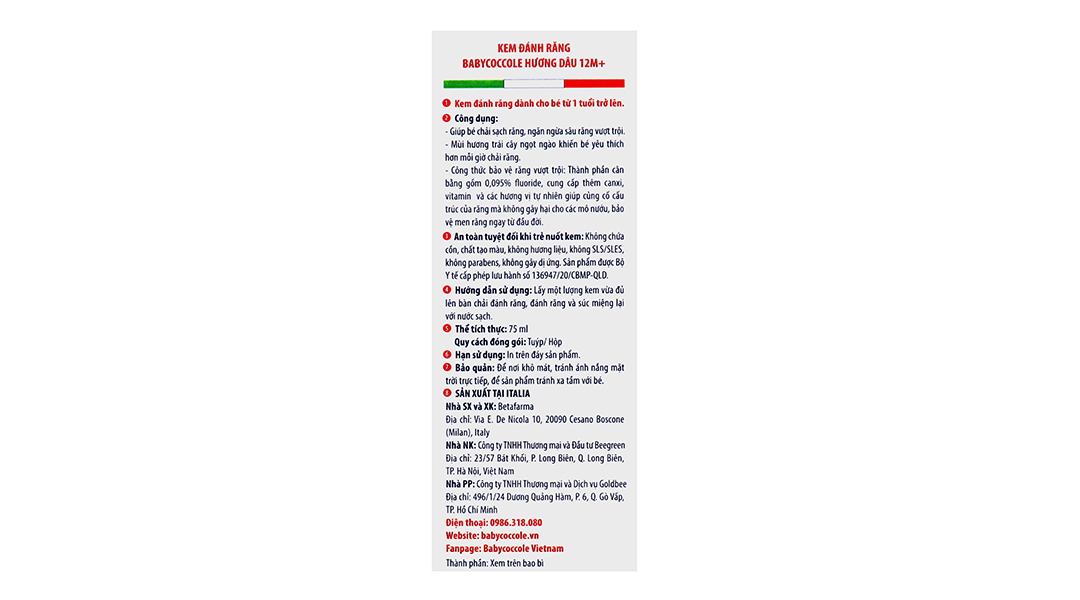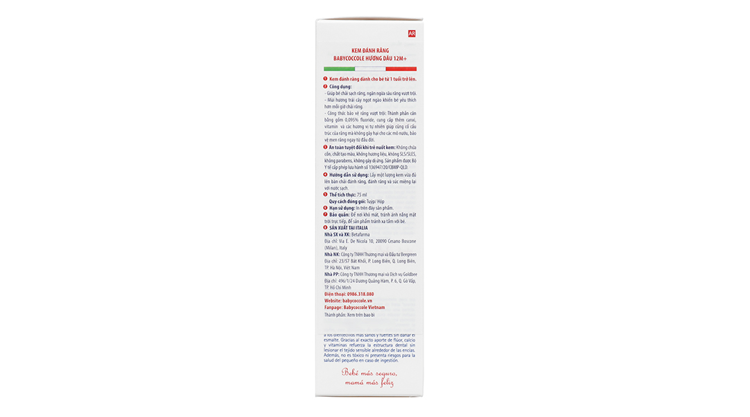 Kem đánh răng Babycoccole ngăn ngừa sâu răng cho bé hương dâu tuýp 75ml