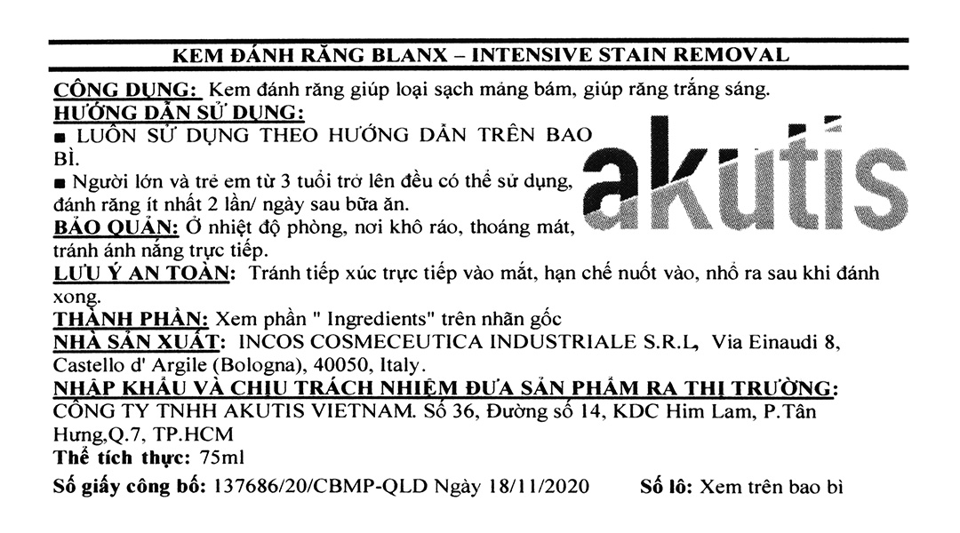 Kem đánh răng BlanX Intensive Stain Removal giúp sạch mảng bám tuýp 75ml