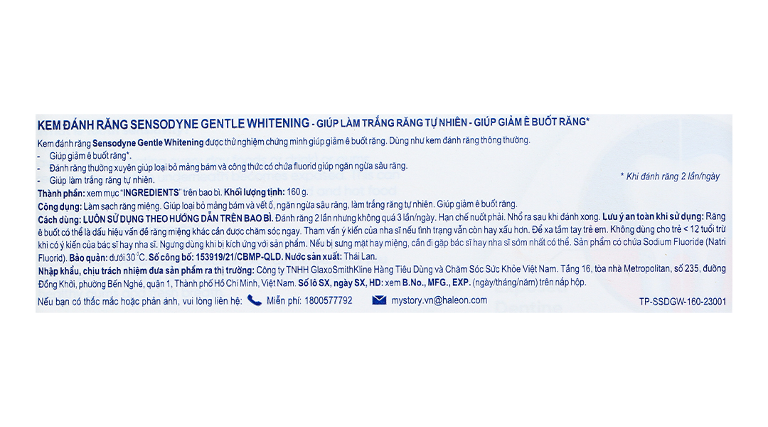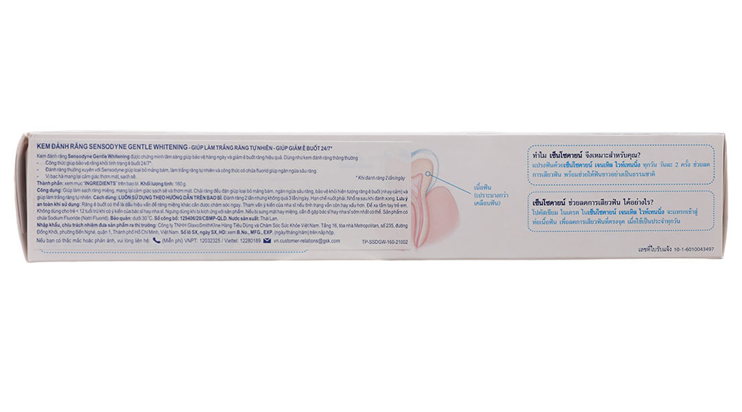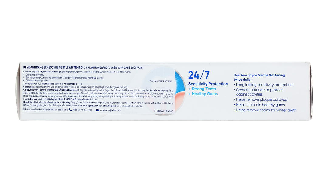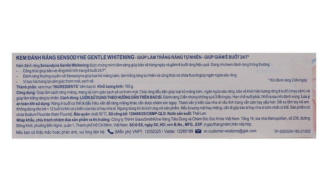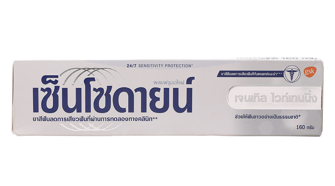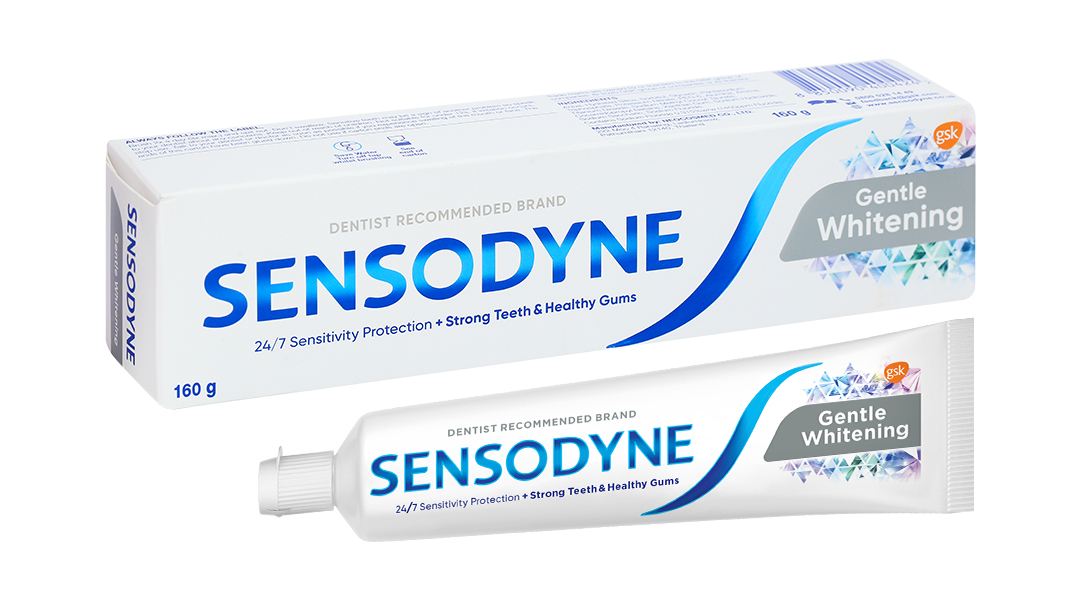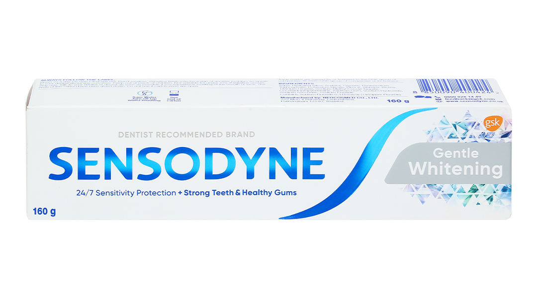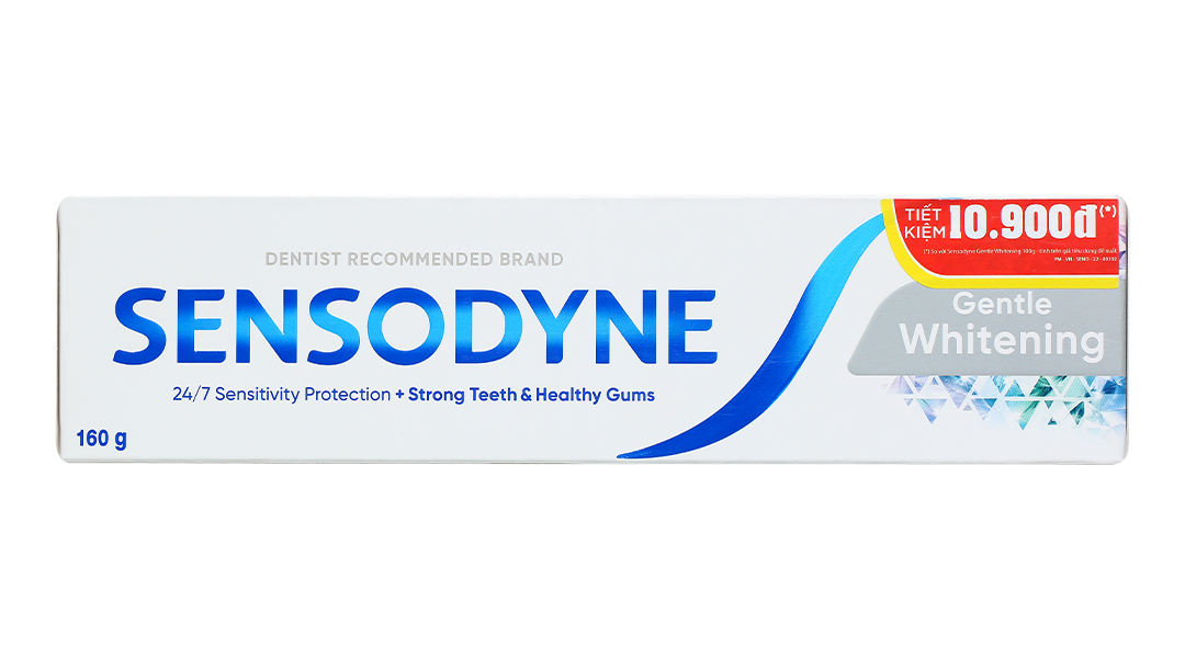 - Kem đánh răng Sensodyne Gentle Whitening 160g đã được chứng minh lâm sàng giúp giảm ê buốt răng và bảo vệ răng nhạy cảm mỗi ngày.