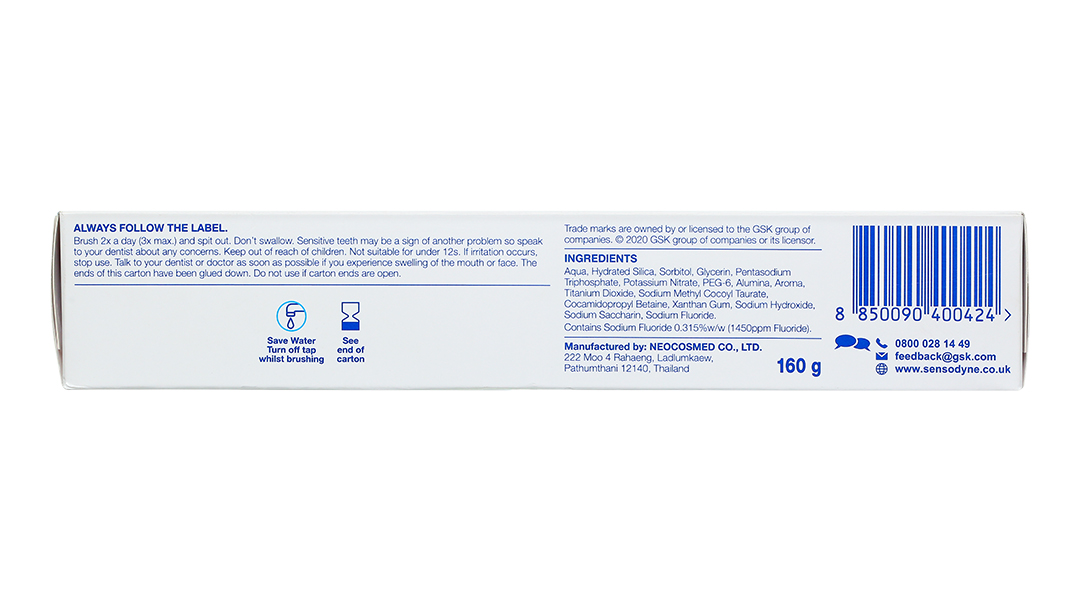 - Contains Sodium Fluoride 0.315% w/w (1450ppm Fluoride).