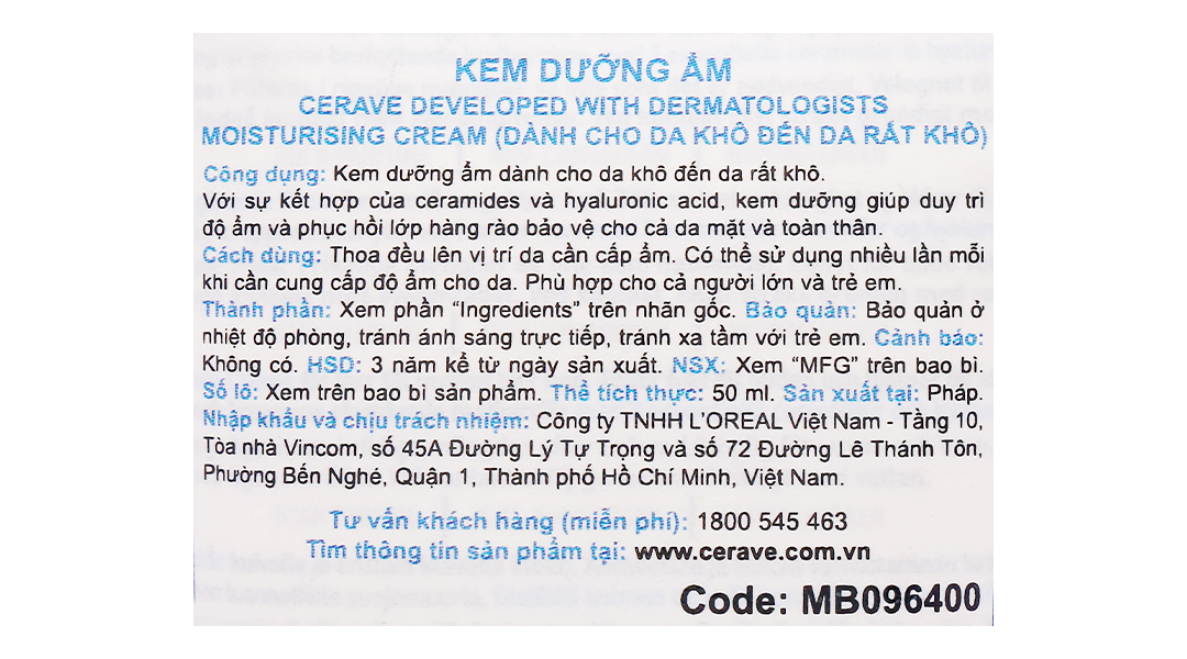 - Kem dưỡng ẩm Cerave cho da khô đến rất khô là sản phẩm của thương hiệu Cerave, thương hiệu luôn hướng đến sự lành tính và an toàn trên mọi sản phẩm.