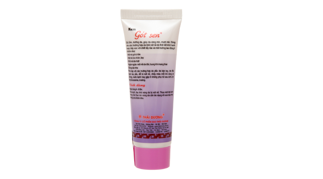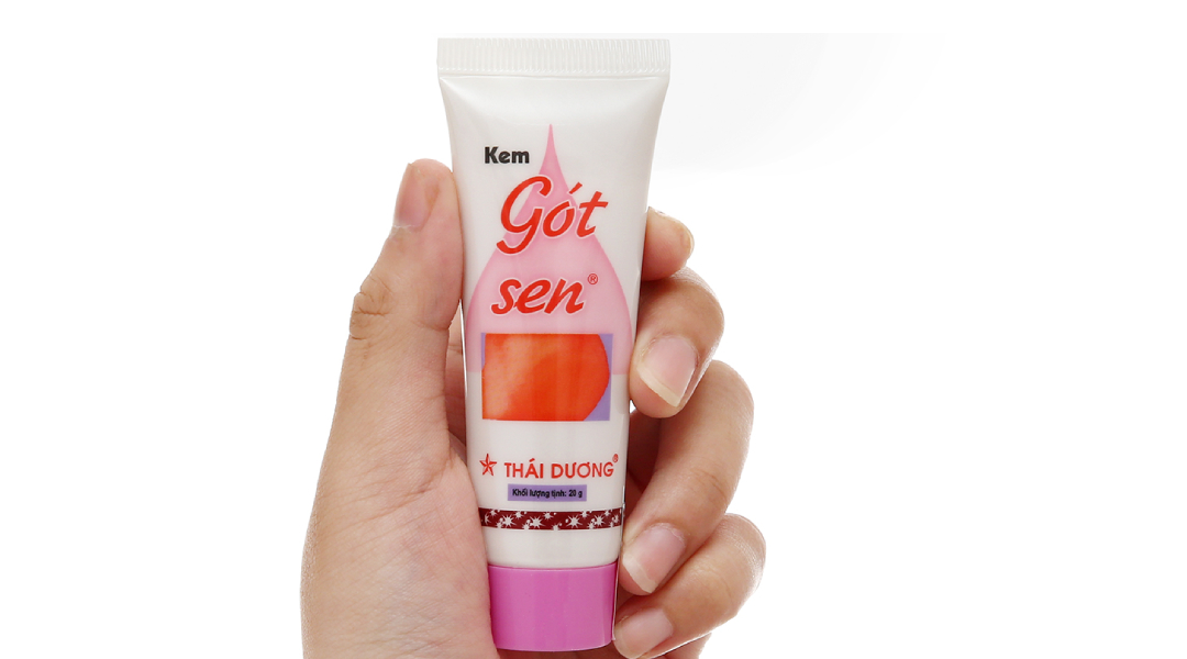 Kem Gót Sen 20g: Aqua, Curcuma longa (Nghệ), Paraffin oil, PEG-75 lanolin, Propylene glycol, PEG-40 Hydrogenated castor oil, Polysorbate 80, Glyceryl monostearate, stearic acid, Glycerin, Isopropyl myristate, Petrolatum, Cetearyl alcohol, Fragrance, Tocopheryl acetate (Vitamin E), Sodium chloride, Neolone PE.