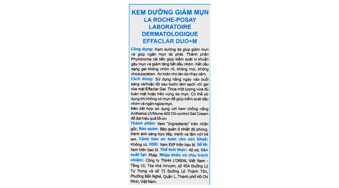 Kem dưỡng La Roche-Posay Effaclar Duo+ M ngăn ngừa mụn hiệu quả tube 40ml