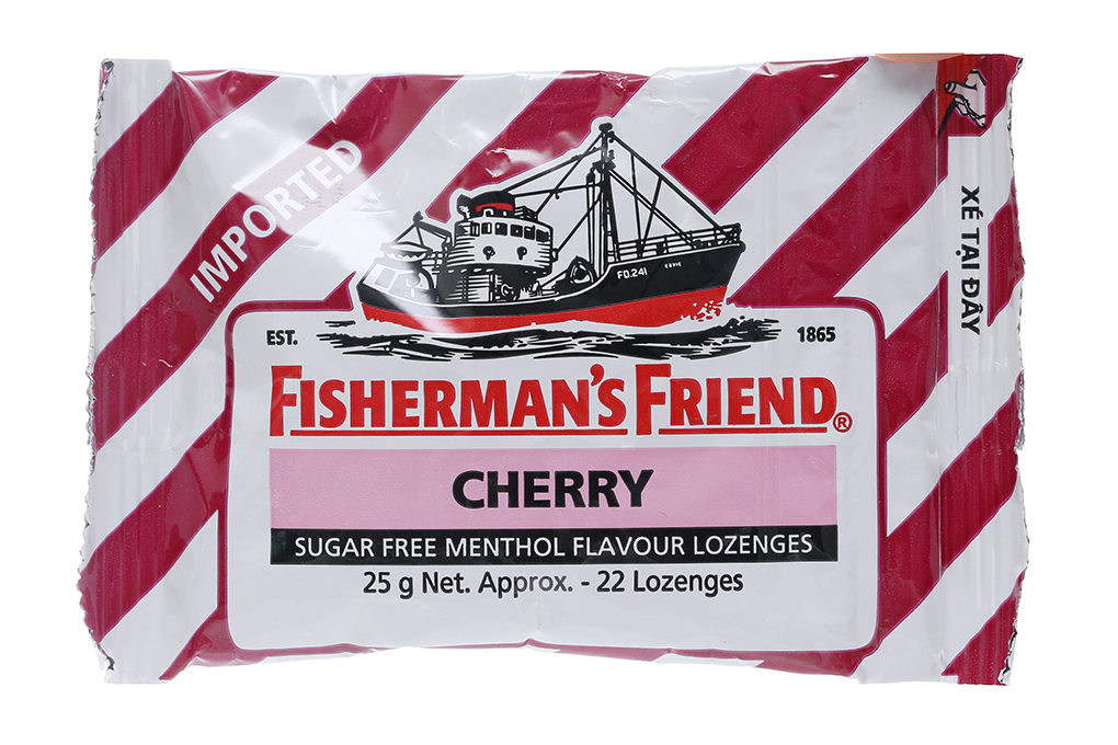 Kẹo cay con tàu không đường Fisherman’s Friend vị Cherry & Menthol giúp thông cổ, mát họng, thông mũi, giảm viêm họng, ho khan. Giữ hơi thở thơm tho giúp bạn tự tin hơn trong giao tiếp và làm tỉnh táo, mang lại cảm giác dễ chịu tức thì cho bạn.