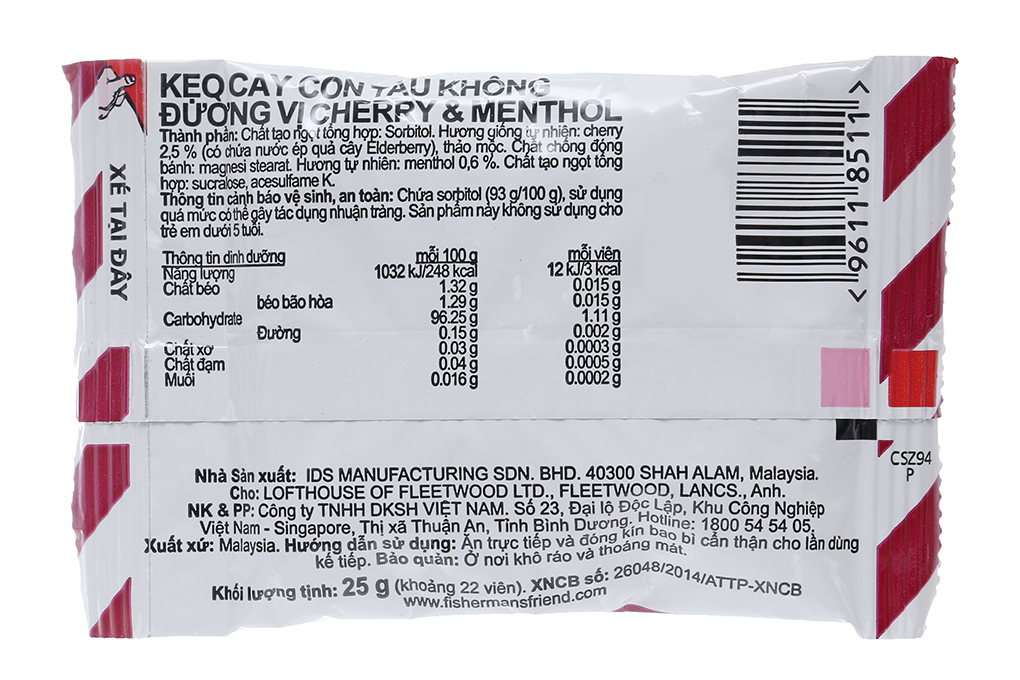 Kẹo cay con tàu Fisherman’s Friend vị Cherry sản xuất trên dây chuyền hiện đại nhưng vẫn giữ đúng công thức truyền thống, không sử dụng màu, mùi nhân tạo. Thiết kế dạng gói nhỏ gọn, giúp bạn có thể mang theo mọi lúc, mọi nơi.