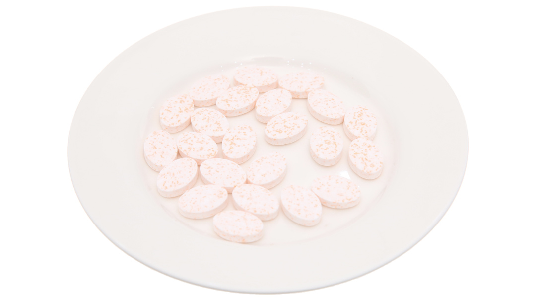 Chất chống đóng bánh: magnesi stearat. Hương tự nhiên: menthol 0.4%. Chất tạo ngọt tổng hợp: sucralose, acesulfame K. Màu tổng hợp: vàng sunset E110.