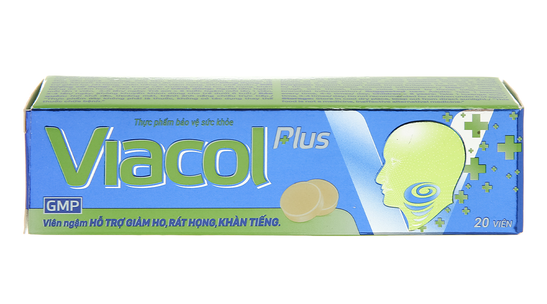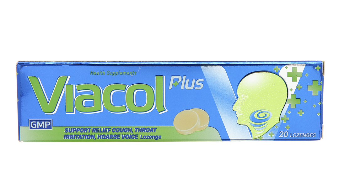 Viên ngậm không đường Viacol Plus với thành phần thảo mộc thiên nhiên, chứa các chiết xuất như bạc hà, cao cam thảo, tinh dầu húng chanh, tinh dầu gừng,… sẽ giúp bổ phổi ích phế làm ấm đường hô hấp, hỗ trợ thuyên giảm các triệu chứng ho hen, rát họng, khàn tiếng do viêm họng, viêm đường hô hấp gây nên.