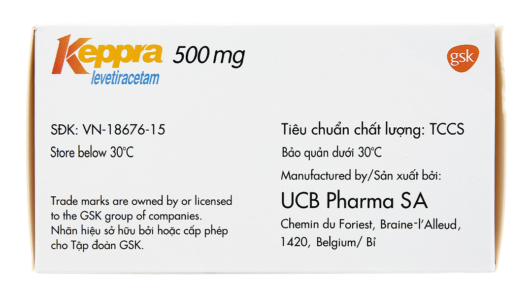 Mỗi viên nén bao phim chứa 500mg levetiracetam.