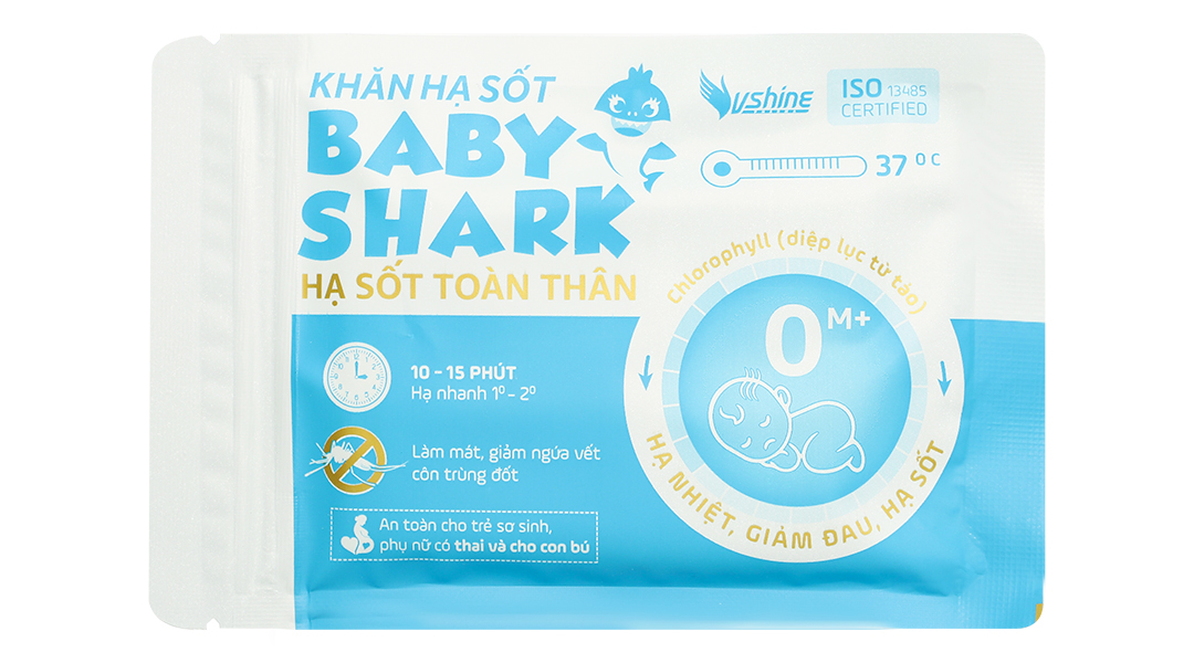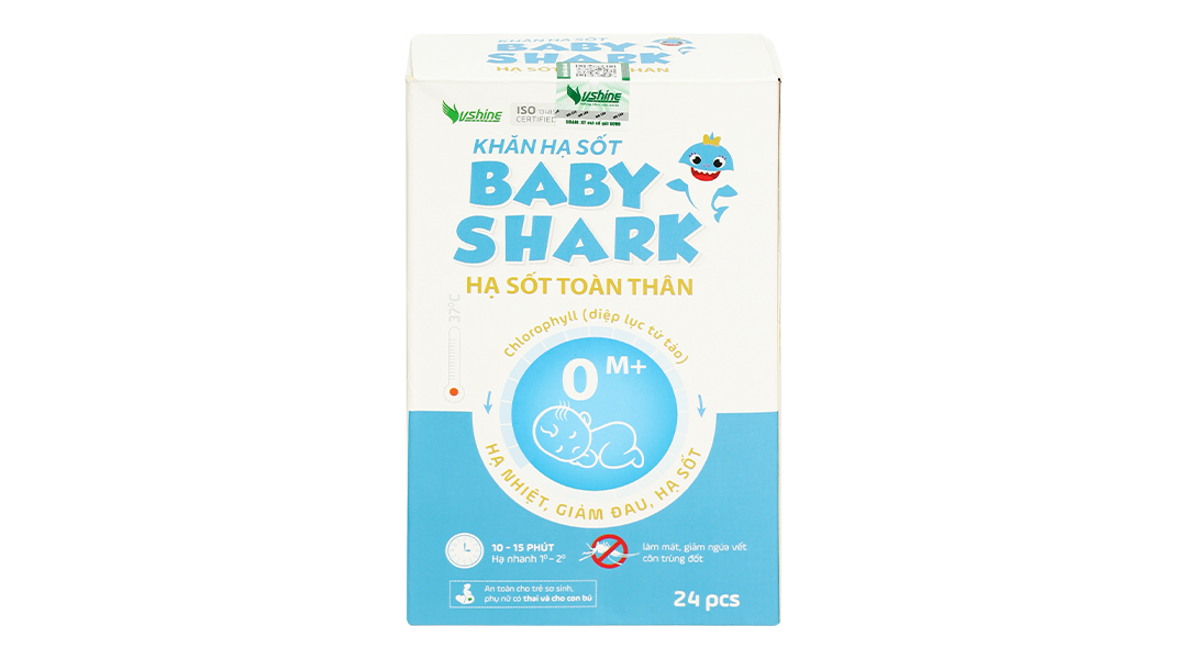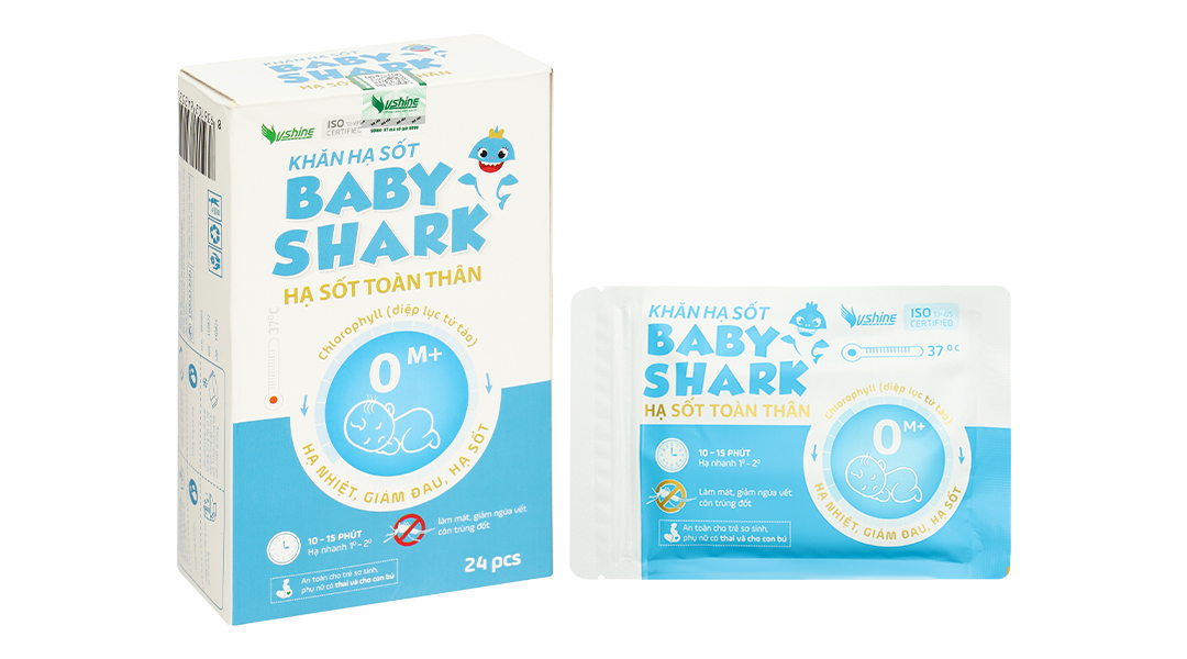 Khăn hạ sốt Baby Shark 0M+ làm mát da bé, tạo cảm giác dễ chịu, sảng khoái cho bé khi thời tiết nắng nóng hay khi trẻ quấy khóc, khó chịu.