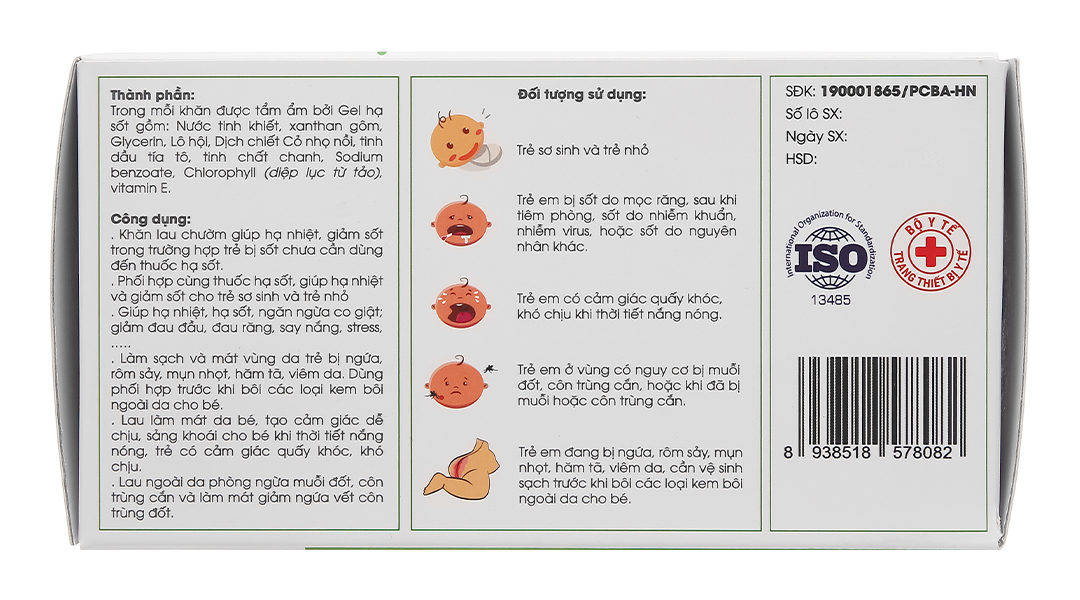 Khăn hạ sốt Dr.papie 0+ Không chứa tinh dầu bạc hà và Menthol: Dùng cho trẻ sơ sinh và trẻ nhỏ