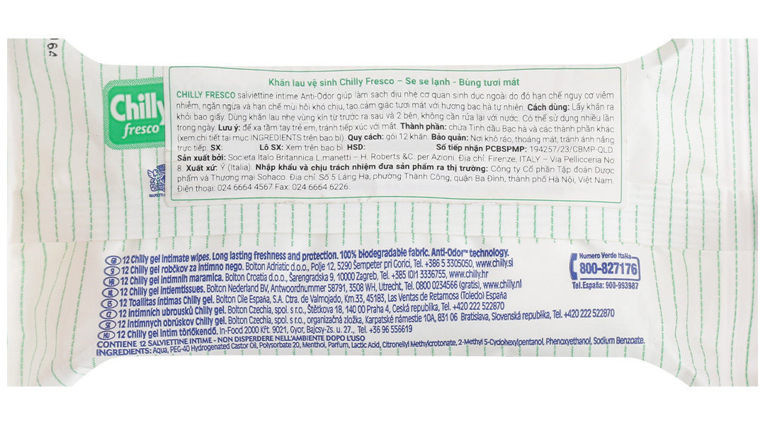 Trải nghiệm thế giới siêu mát lạnh cùng công thức tươi mới có trong sản phẩm khăn ướt vệ sinh vùng kín Chilly Fresco. Với bảng thành phần an toàn, lành tính, Chilly Fresco là sản phẩm khăn lau phụ khoa đáp ứng những yêu cầu khó nhất kể cả làn da nhạy cảm, mỏng manh: