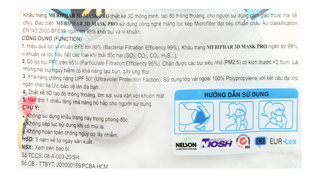 Công dụngNgăn tới 99% khói bụi và vi khuẩn
