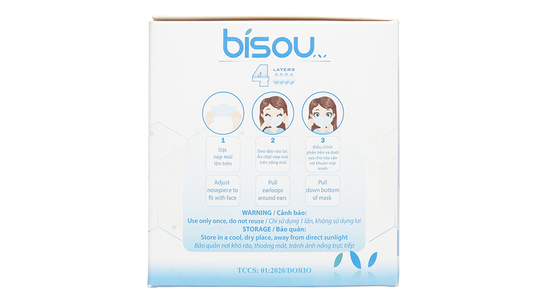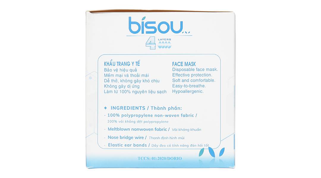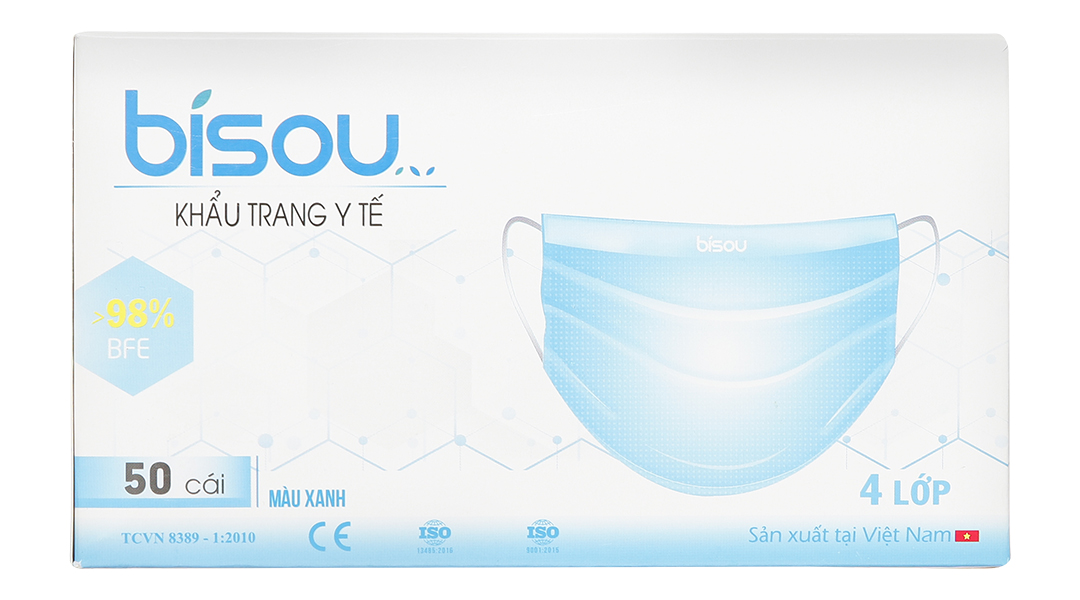 Khẩu trang y tế Bísou 4 lớp màu xanh gồm:
