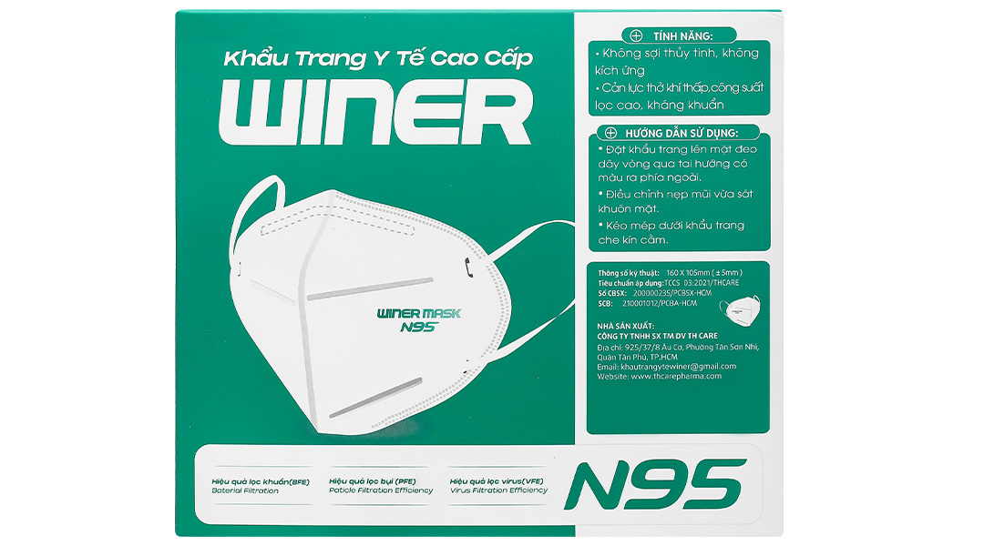 Khẩu trang y tế Winer N95 4 lớp màu trắng hộp 10 cái