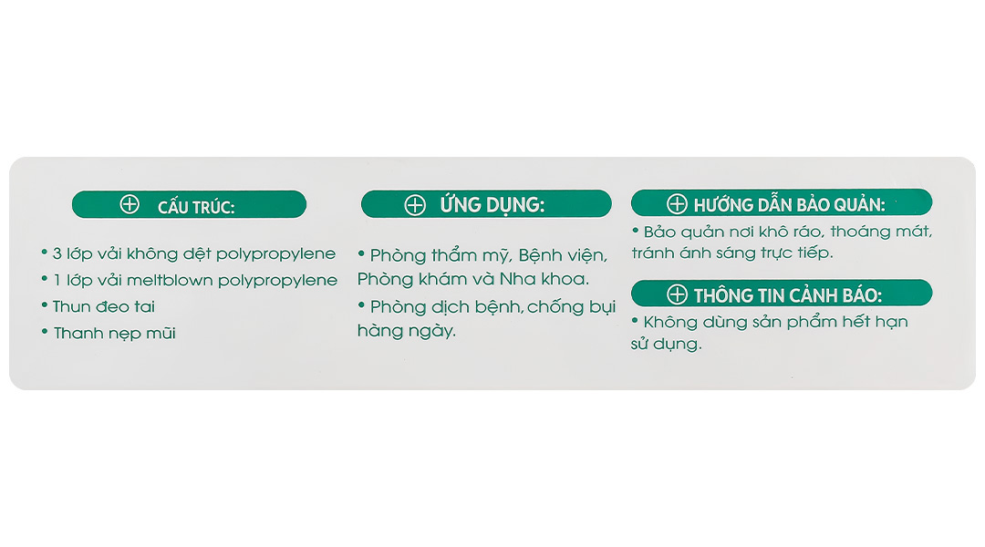 Công dụngNgăn chặn bụi, kháng khuẩn qua đường hô hấp