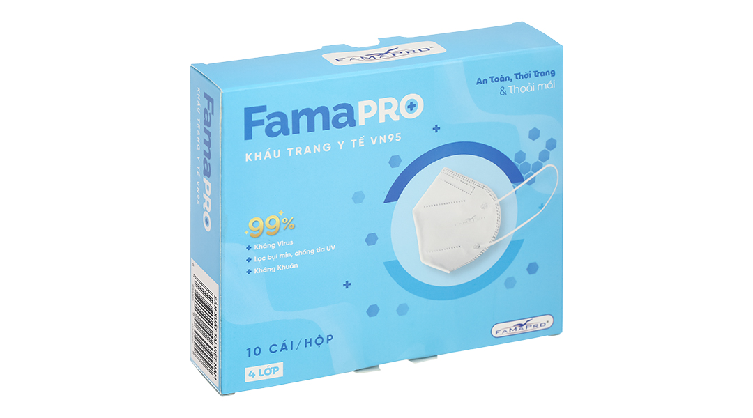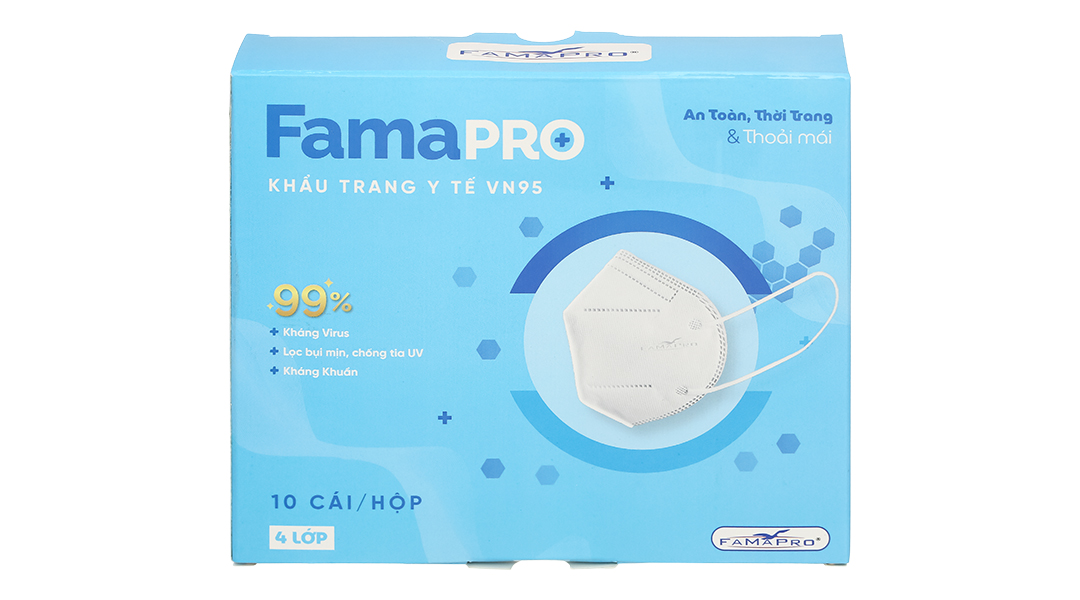 Khẩu trang y tế Famapro VN95 4 lớp màu trắng hộp 10 cái