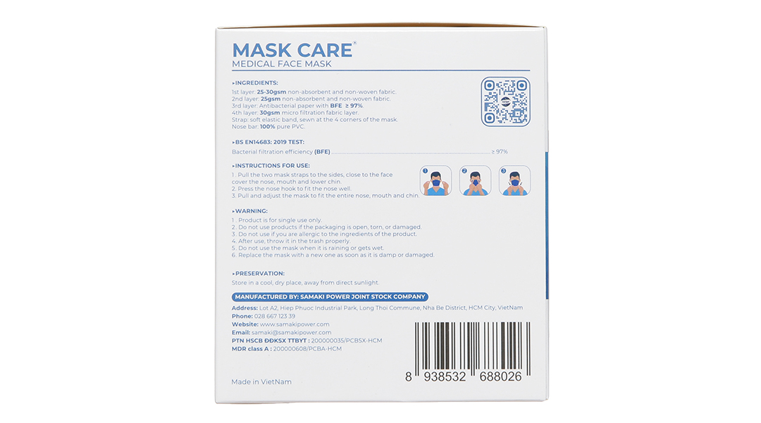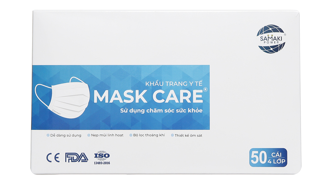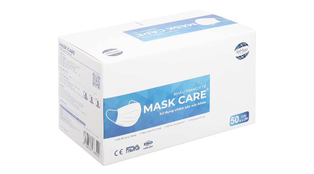 Khẩu trang y tế Mask Care 4 lớp màu trắng hộp 50 cái