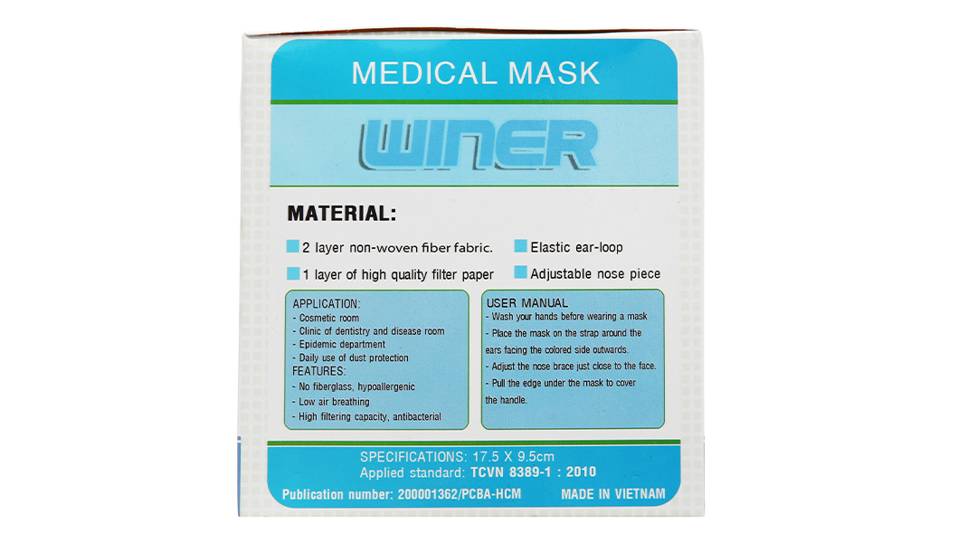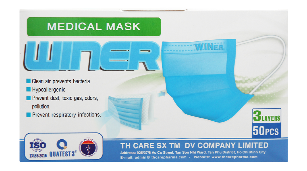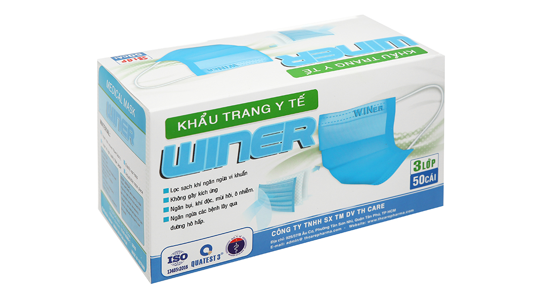 Khẩu trang y tế Winer 3 lớp màu xanh hộp 50 cái