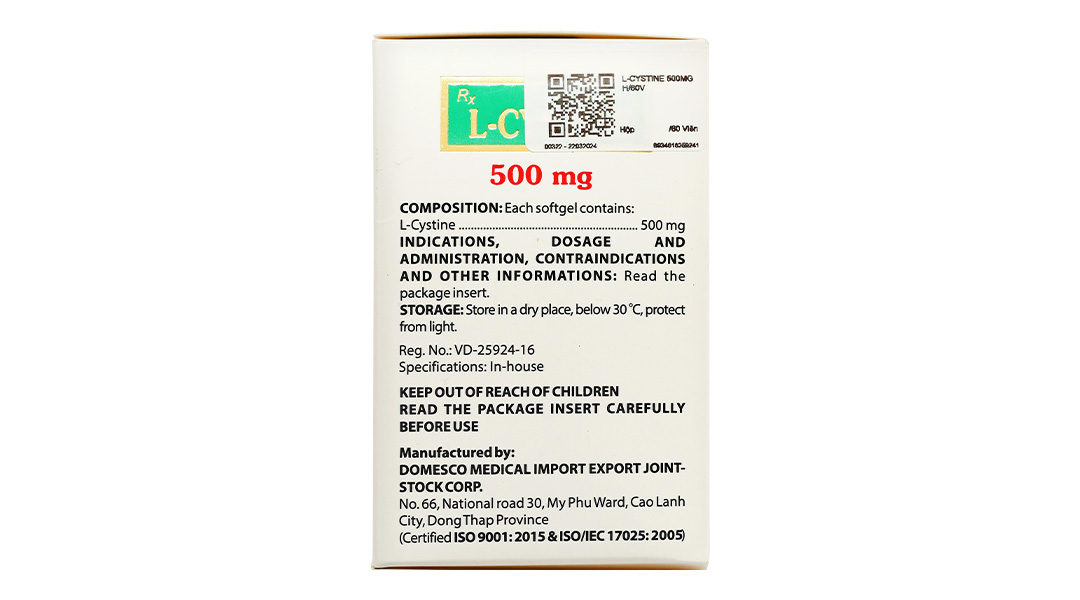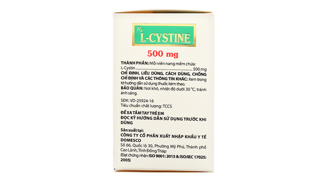 - Thuốc L-cystine domesco 500mg có chứa dầu nành. Nếu bạn dị ứng với đậu phộng hoặc đậu nành, không sử dụng thuốc này.