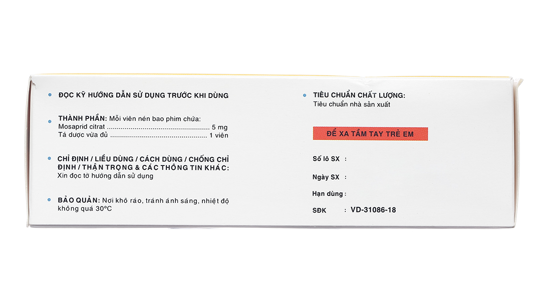 Thành phần dược chất: Mosaprid citrat 5 mg