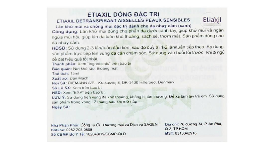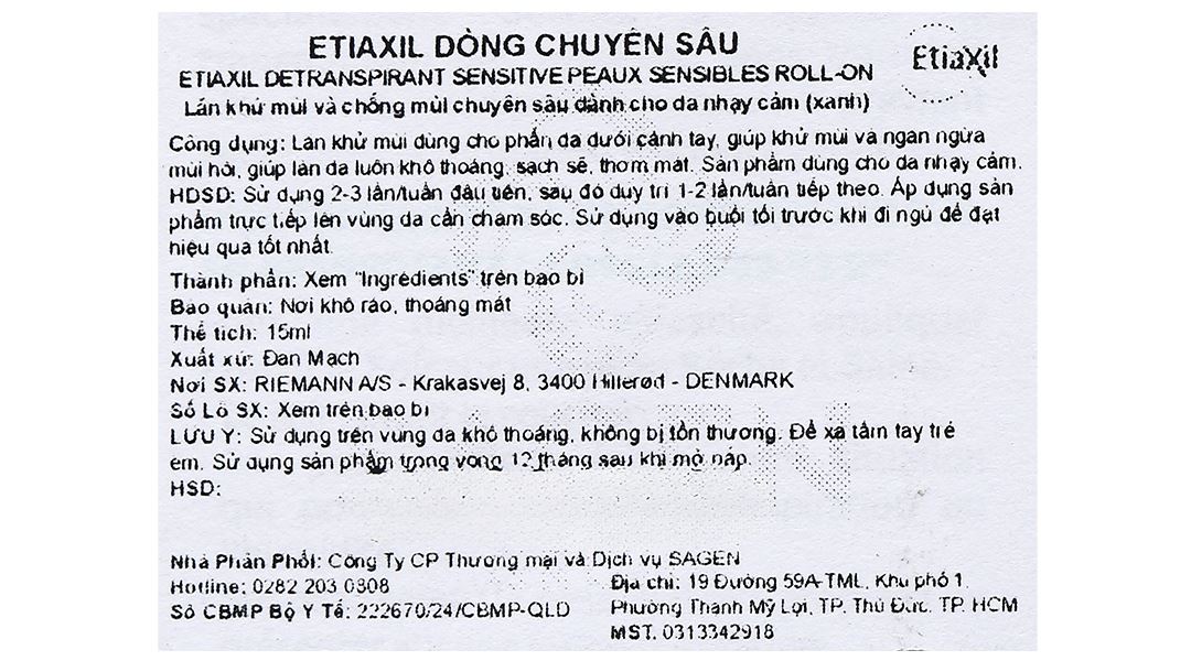 Lăn khử mùi Etiaxil giúp khử mùi hôi dưới cánh tay cho da nhạy cảm chai 15ml