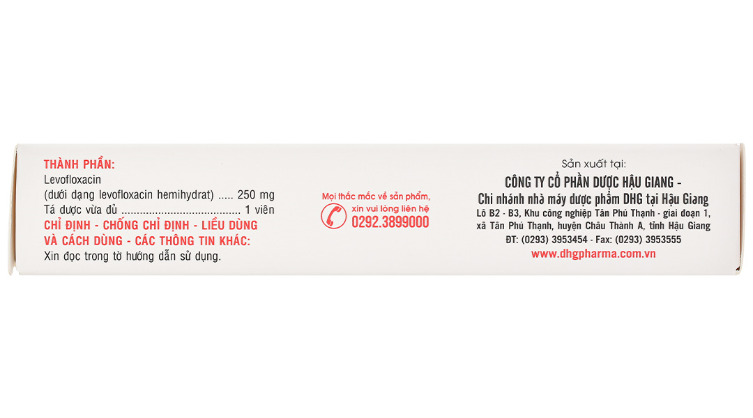 Levofloxacin (dưới dạng levofloxacin hemihydrat) 250mg.