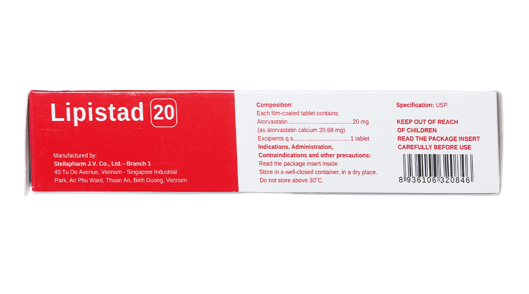 Lipistad 20 trị rối loạn mỡ máu (3 vỉ x 10 viên)