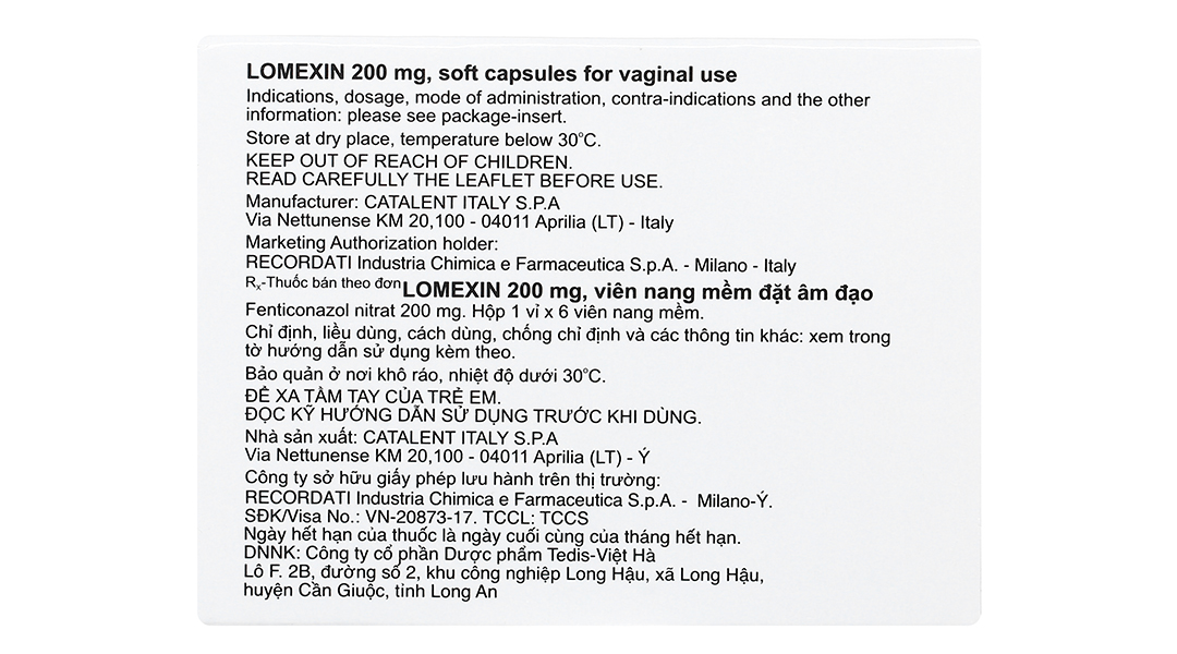 Lomexin 200 mg: Đặt 1 viên nang mềm 200 mg trong 3 ngày liên tiếp.